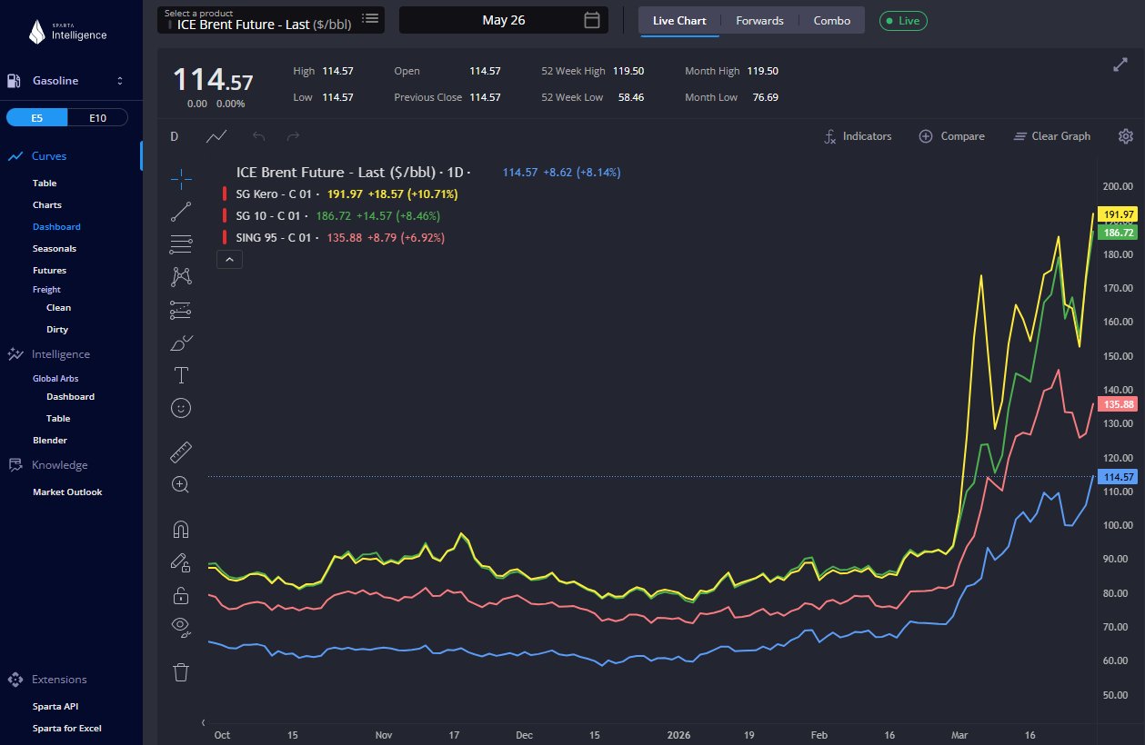 June Goh on X was the first to call the shock in refined products, and also correctly predict, end February, that the shock in refined products would be larger and more disproportionate than in crude. To me, I guess this is because not only are we getting a crude shock from the Hormuz closure, but also a products shock from refinery strikes - both feedstock and capacity.