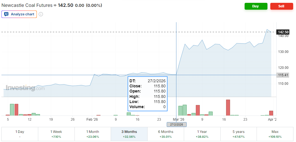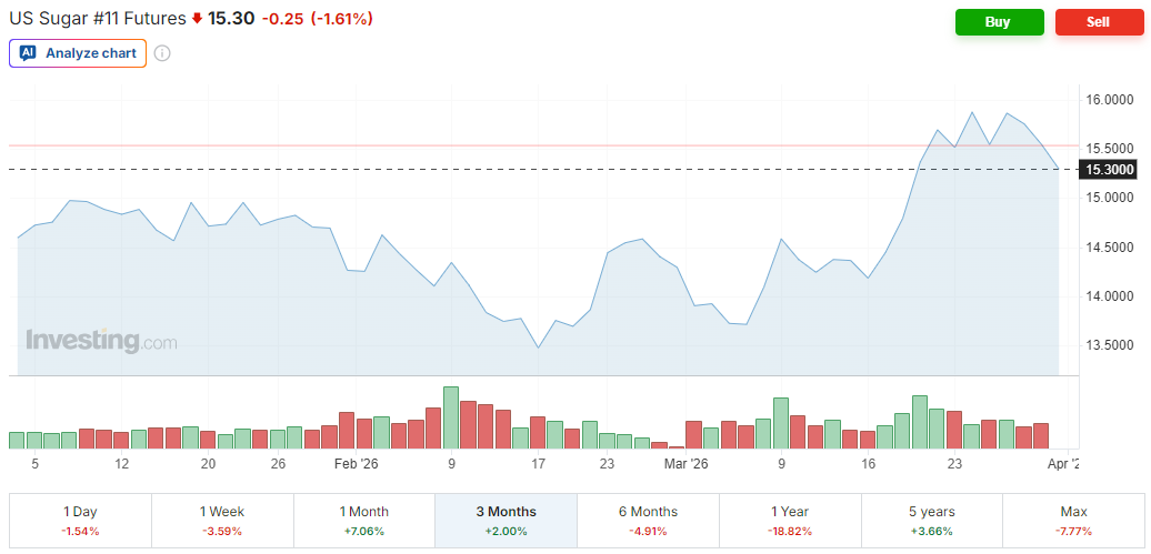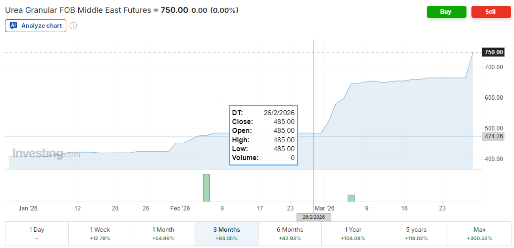 This is mostly from reading Yet Another Commodity Guy’s tweets who is an expert in agricultural commodities amongst other things. To quote his tweet “Hormuz is a giant fertilizer bottleneck”, and the idea is that sugar and ethanol are particularly affected by the Iran situation.
