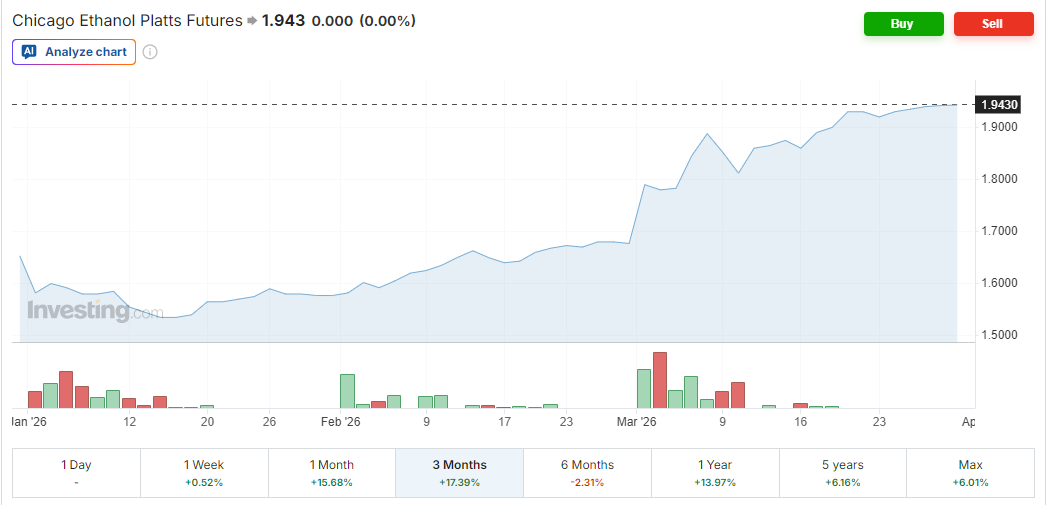 Given that governments around the world are increasing ethanol blend % policies into gasoline, this would drive up demand for ethanol exports to alleviate the gasoline crisis.